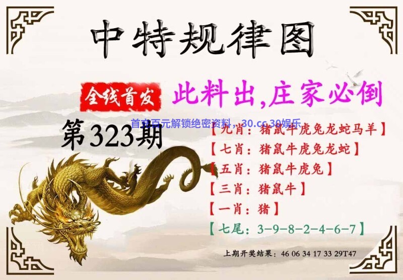 | 325期:男女中特【男肖】开:虎04中 | |||